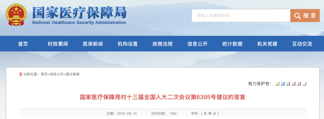 8月12日,据国家医保局官网消息,医保局发布了《对十三届全国人大二次会议第6395号建议的答复医保函〔2019〕80号》。